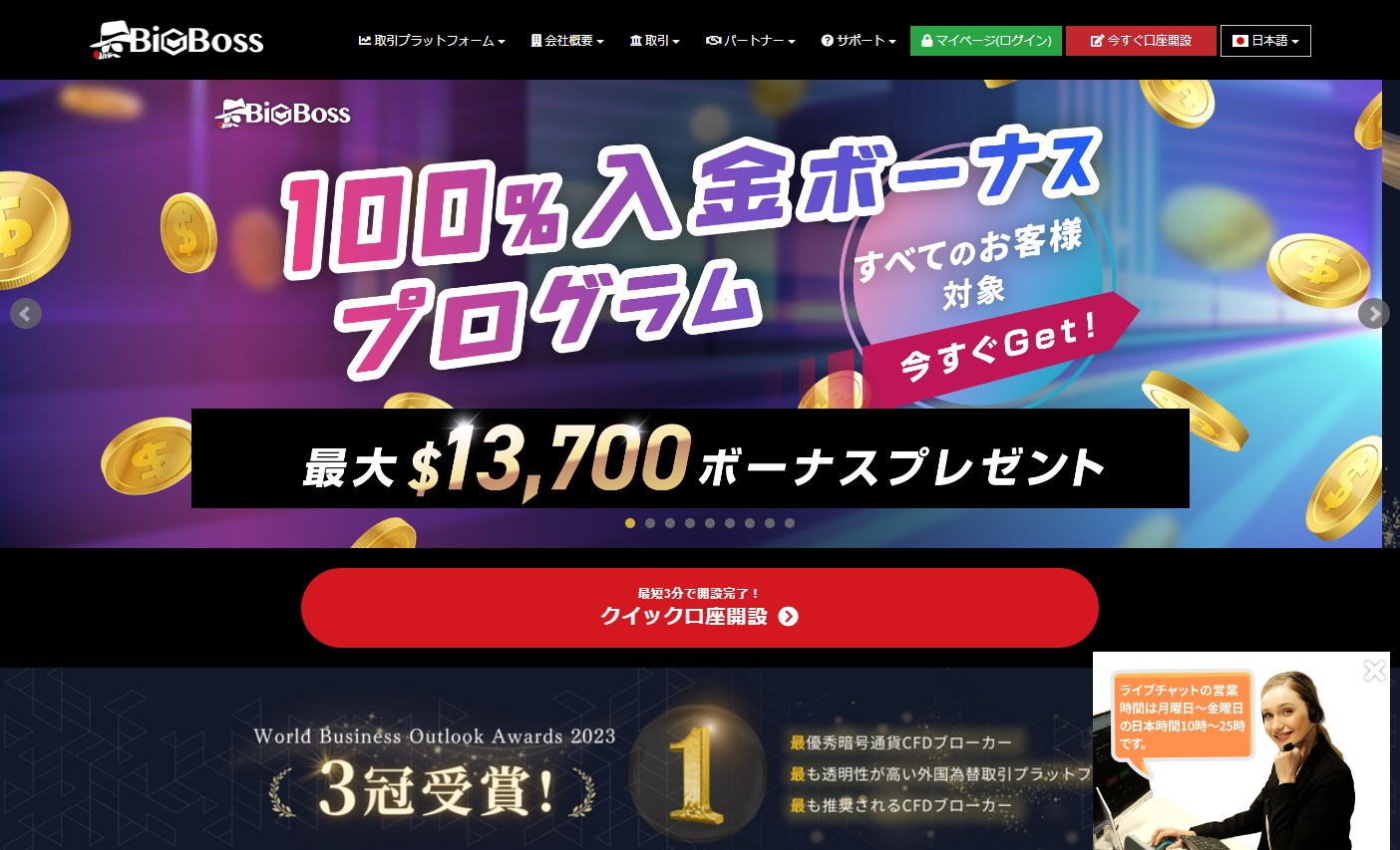 BigBossは2013年よりサービスを開始している比較的運営年数が浅いブローカーですが、サーバーの安定性とFOCREXという仮想通貨取引所を運営していることから近年海外FX利用者から注目を浴びているブローカーです。